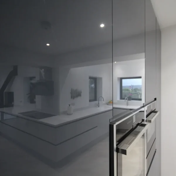 Their kitchen had been extended; but planning restrictions meant that it was quite an awkward shape to figure out how to make it work cohesively. There were beautiful views but the windows were limited; so Parapan was the ideal solution to help to reflect the views and bring the outside in.