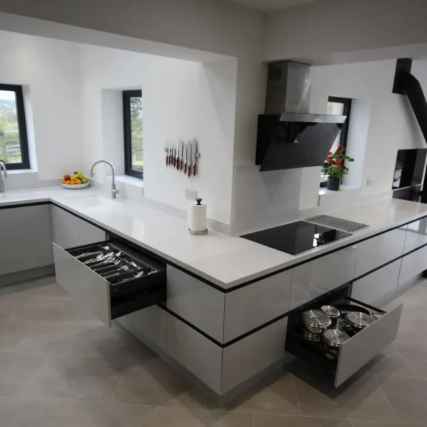 Continuous runs of drawers added to the sleek finish; whilst making the storage more useable.