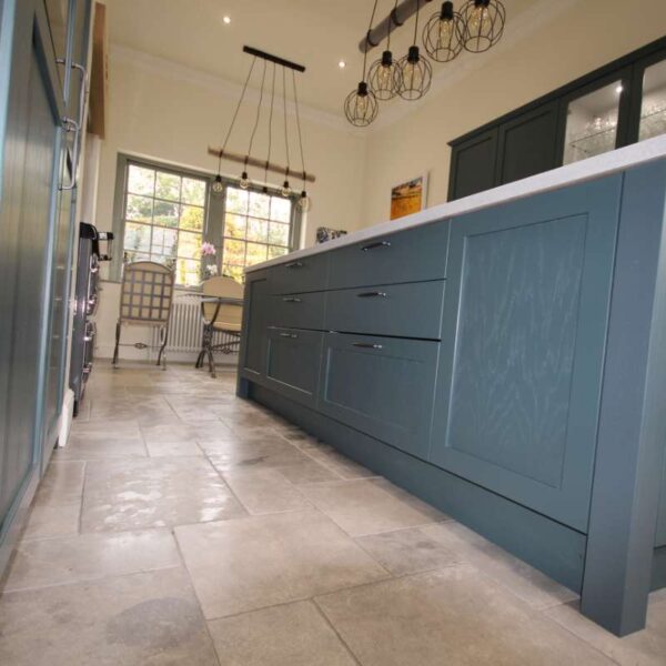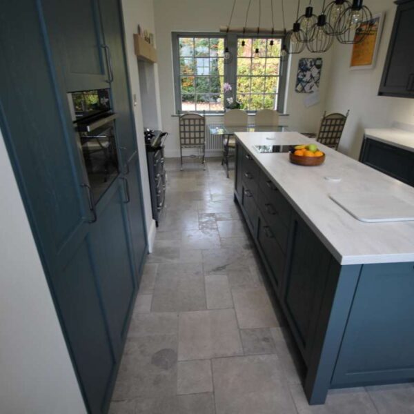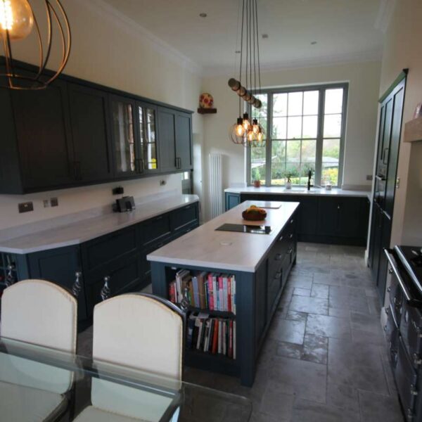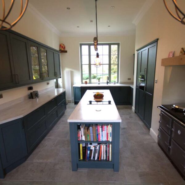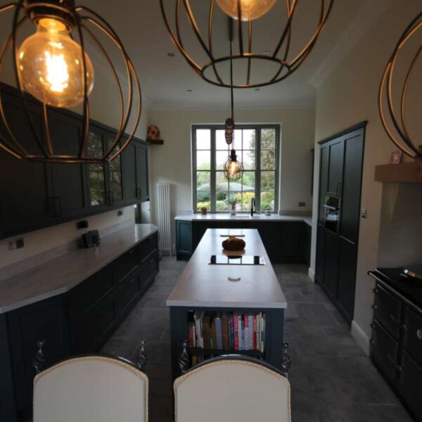 The kitchen felt spacious due to the high ceilings but wasn’t overly wide. However, we were able to utilise the existing alcoves for an aga and in-built storage for a tall fridge and freezer, a combi-oven and a space tower.