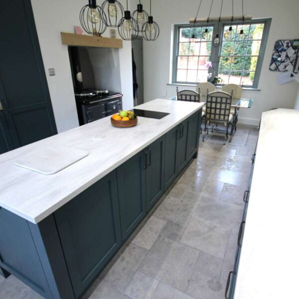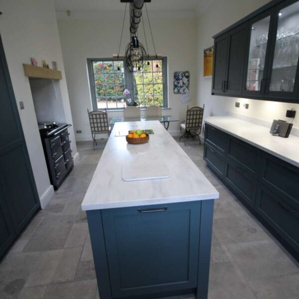 Corian worktops in Arrowroot with a Quooker tap helped to complete the transformation; with space for a good sized table and chairs at the opposite end of the room.