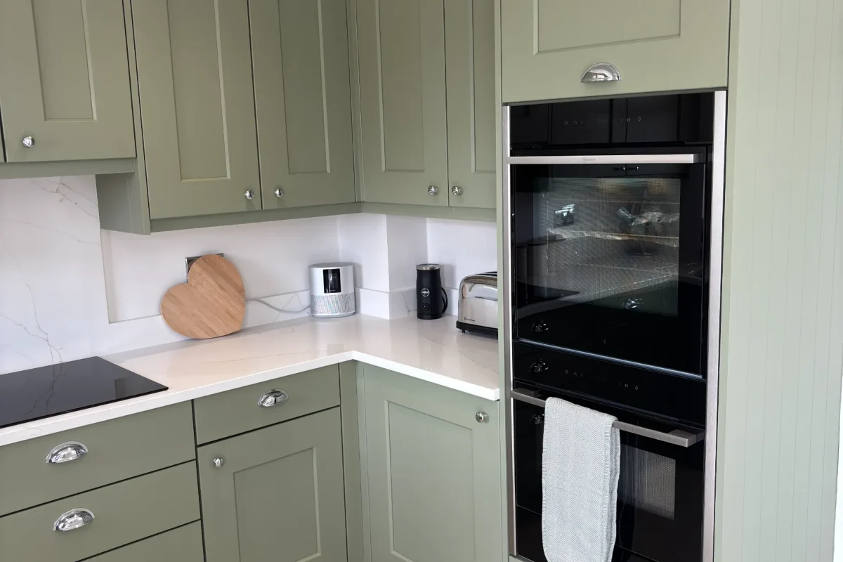 Balance drives everything we do at Matthew James Kitchens – mixing beauty with practicality, skill with fresh ideas. This bespoke project shows exactly what we mean. We’ve brought together Farrow & Ball’s gorgeous Lichen green with warm oak cabinetry and a stunning quartz worktop. Each piece wasn’t just picked for what it does, but for how it makes the space feel.