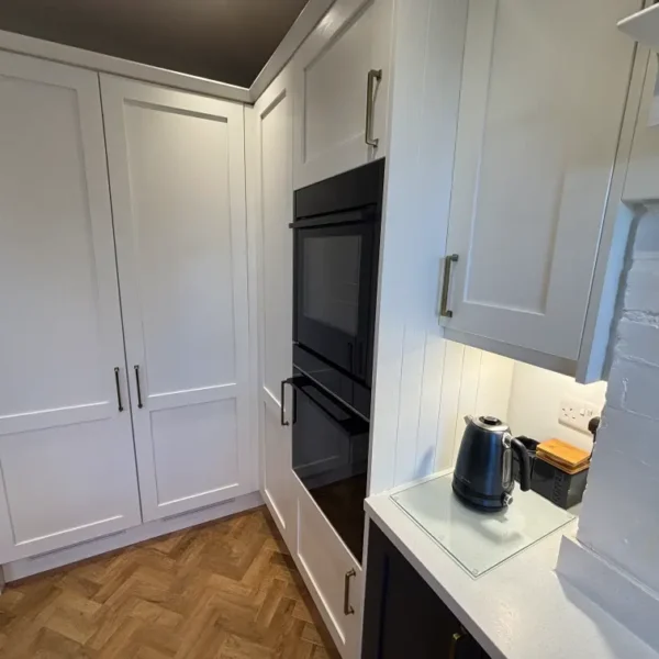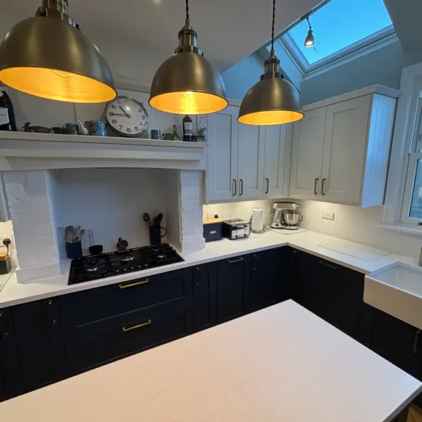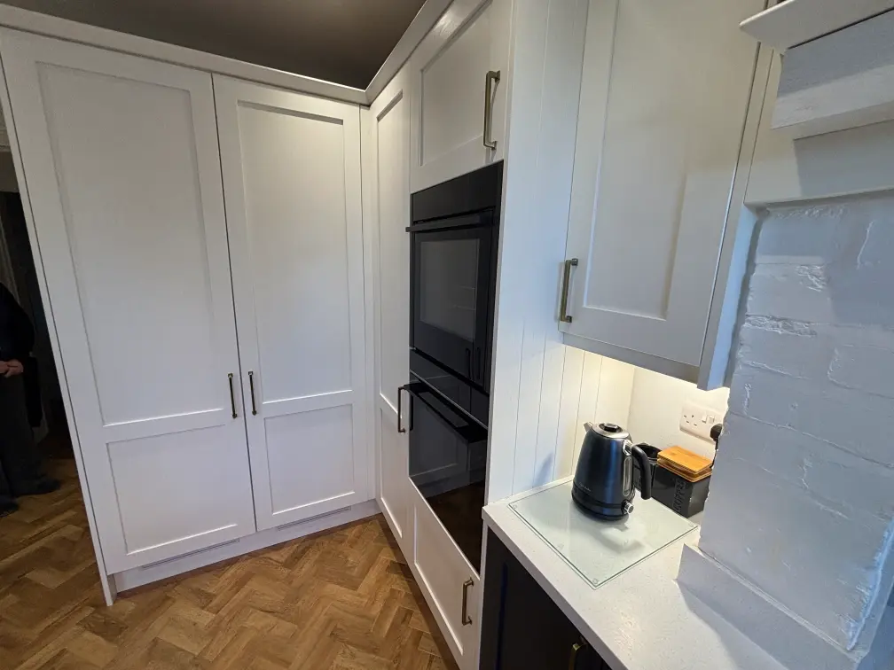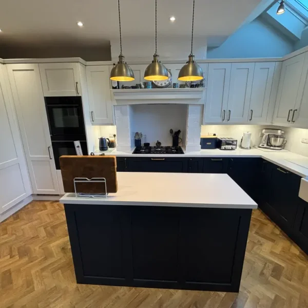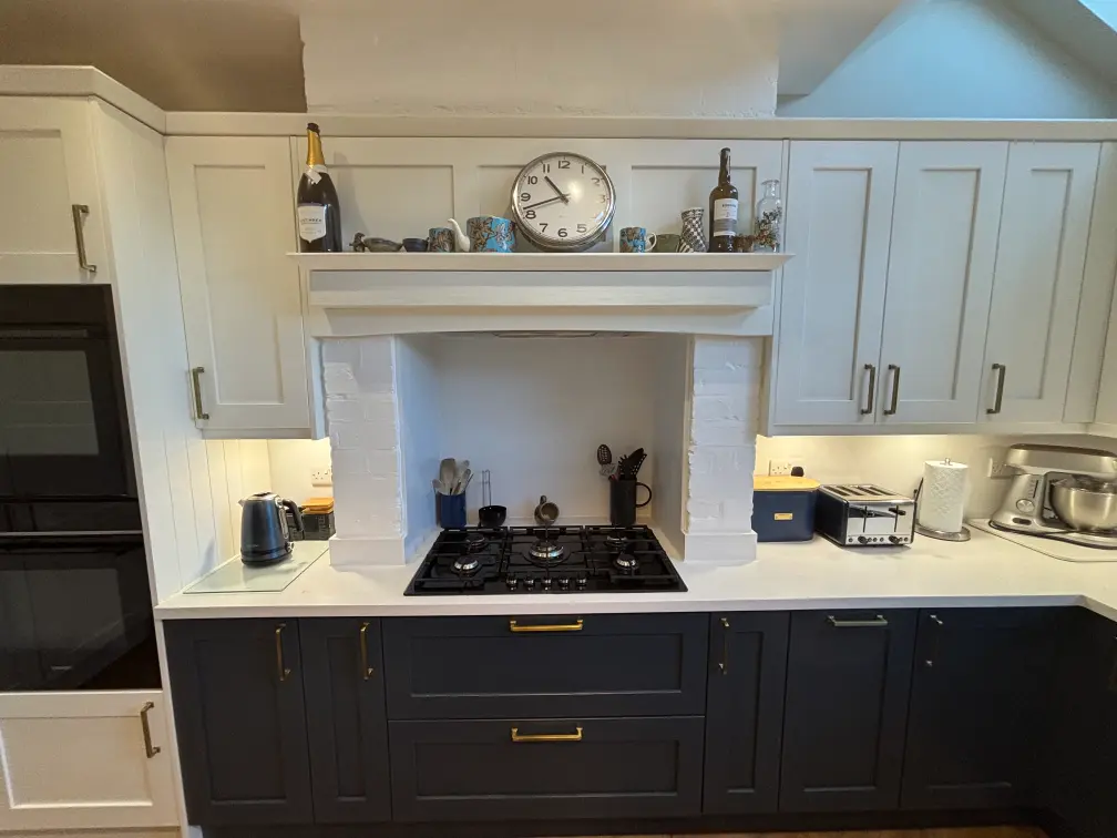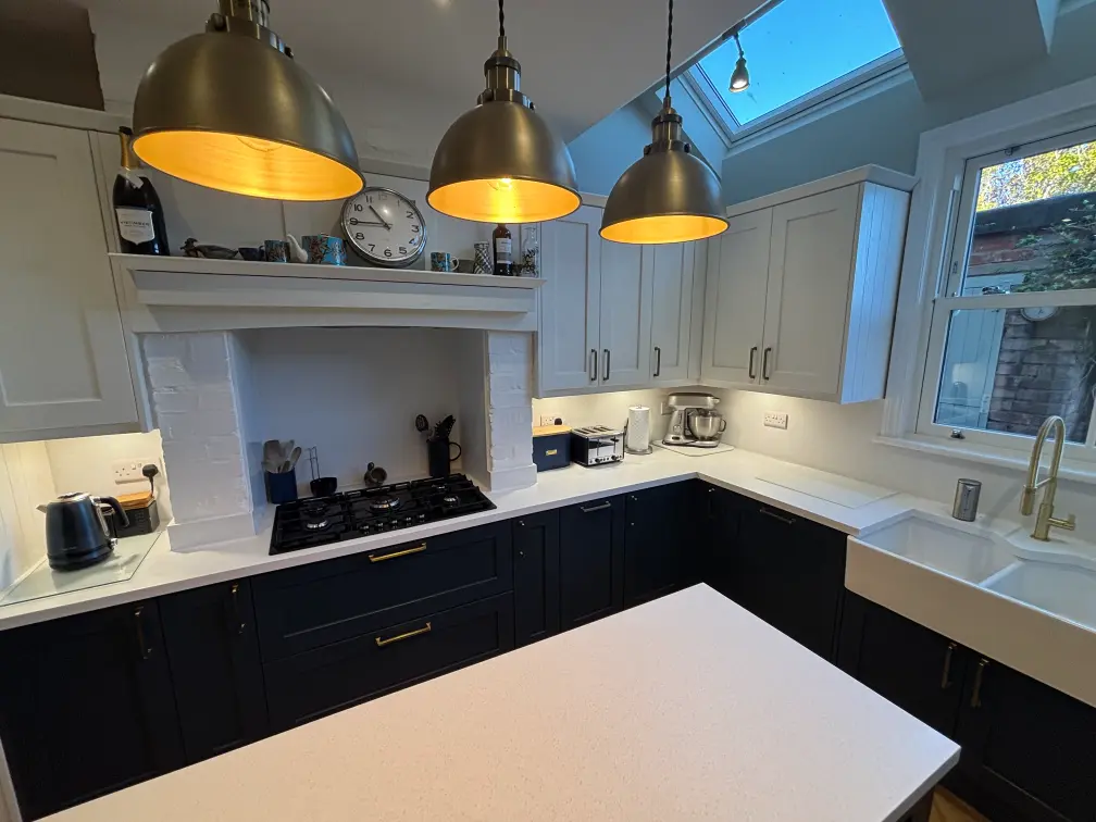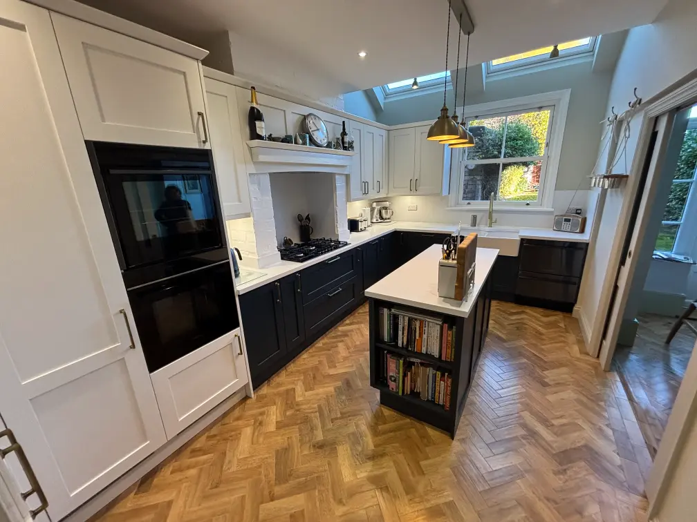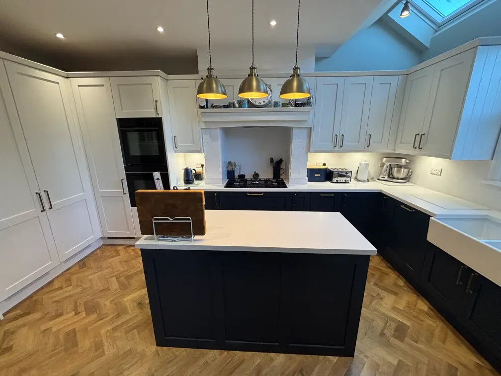 The brief was to create a kitchen that respected the character of the property while delivering everyday practicality for a busy household. Our solution centred around a two-tone Shaker scheme, paired with carefully integrated appliances and generous preparation space.