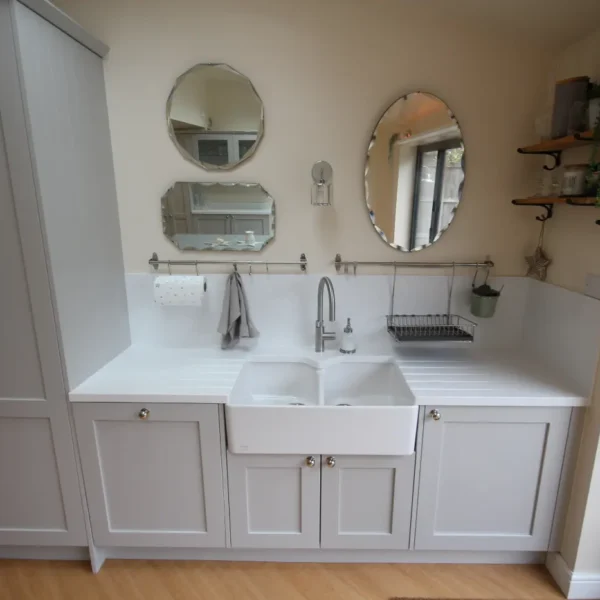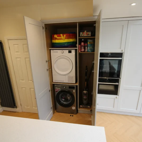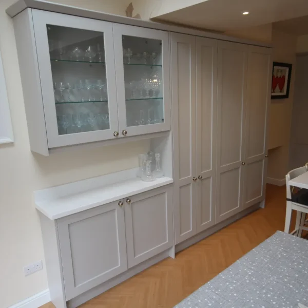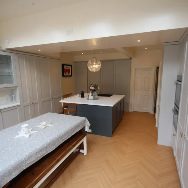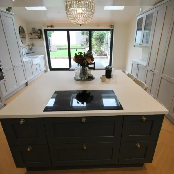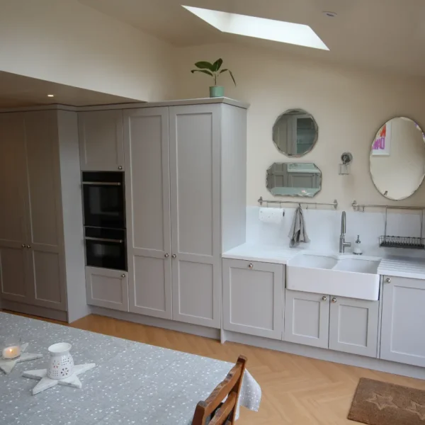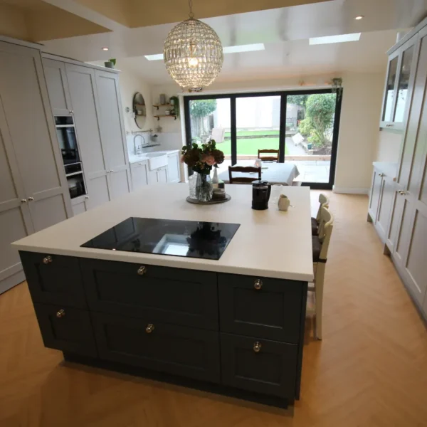 A classic shaker kitchen, in light grey, with clever storage solutions for clients in Longbridge. Our clients contacted us with clear ideas about what they wanted to include within their kitchen; that had been recently extended to incorporate a dining area.