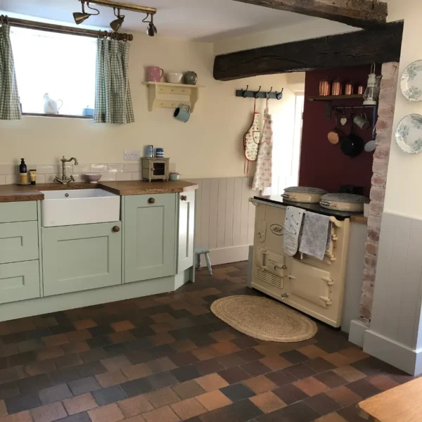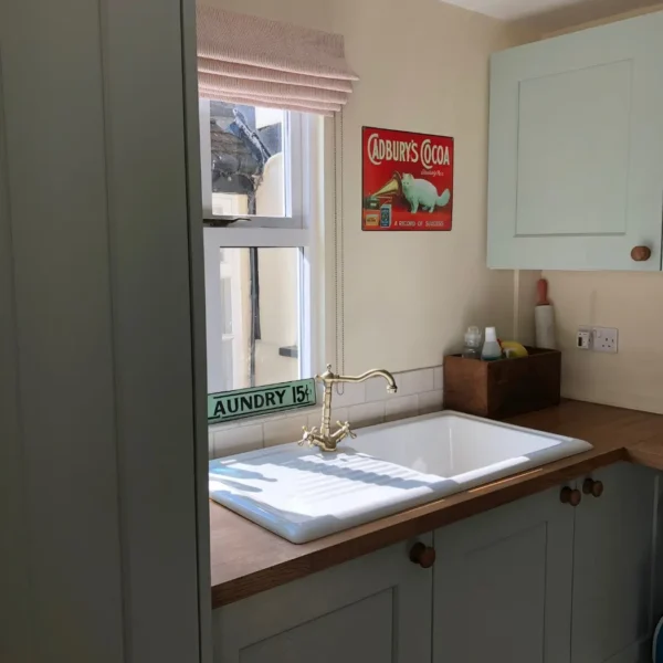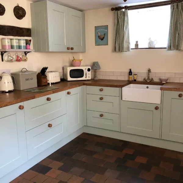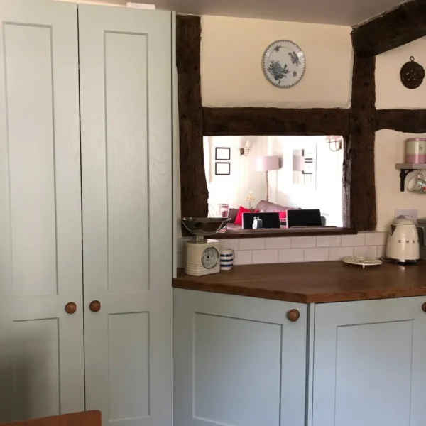 Our clients chose oak shaker doors painted in sage; with a solid oak worktop to complement the ambience of the cottage.
