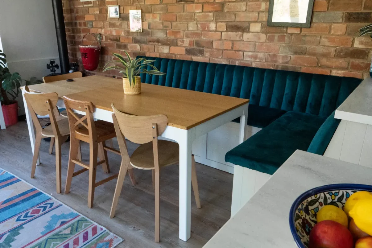 The banquette adds functionality and comfort to the space and makes it feel warm and cosy.