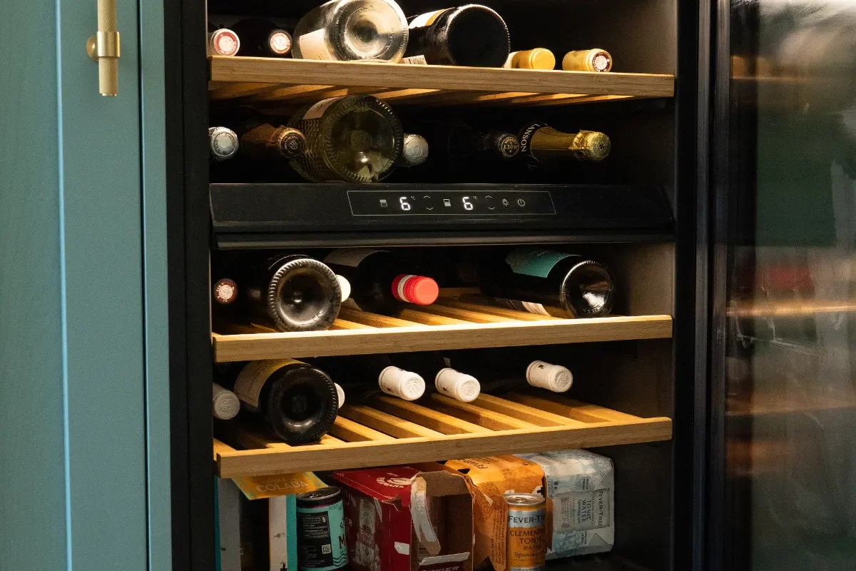 - An integrated wine cooler was built into the island, perfect for entertaining and keeping drinks at the right temperature.