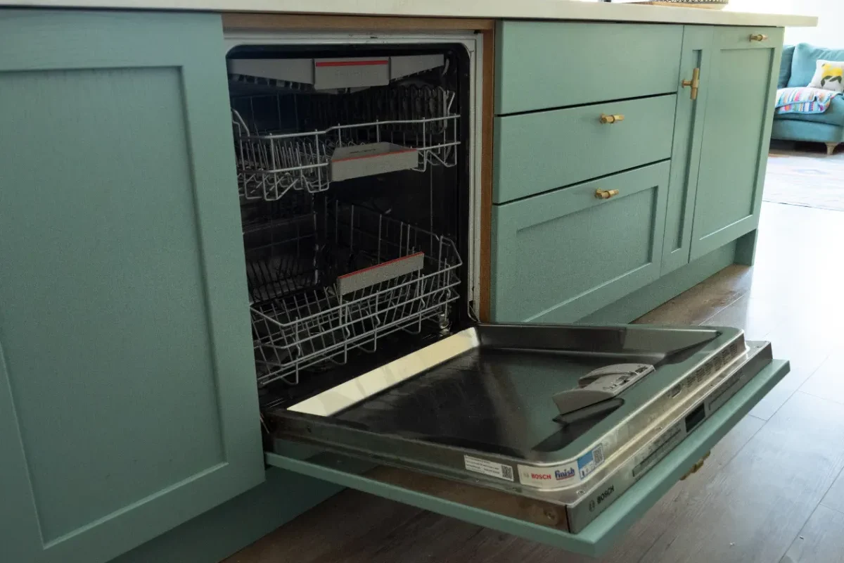 - We stacked the washing machine and tumble dryer to free up floor space.