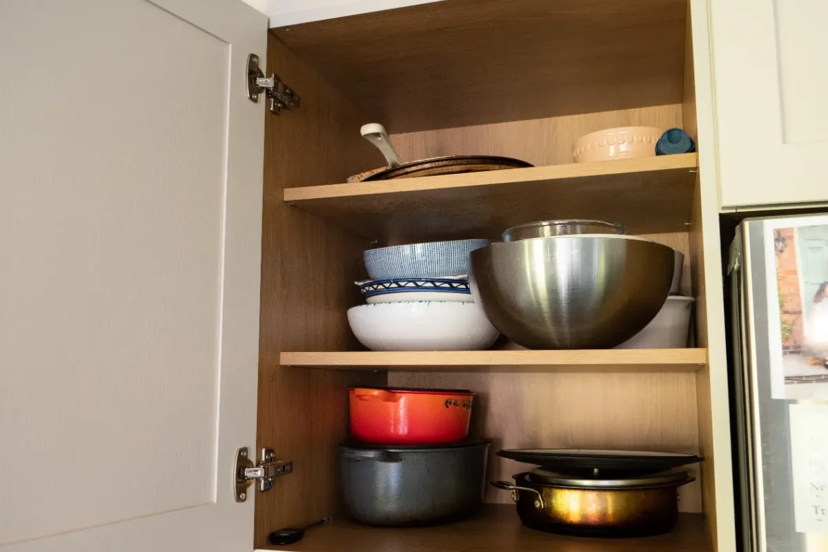 - Open shelving for decorative display or to keep frequently used items within easy reach.