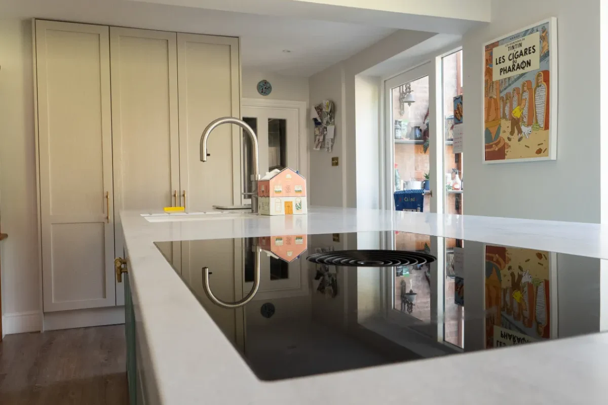 - A Bora venting hob was fitted, keeping the island looking sleek and providing powerful extraction. This clever appliance allows for unobstructed views across the island, making the space feel more social.