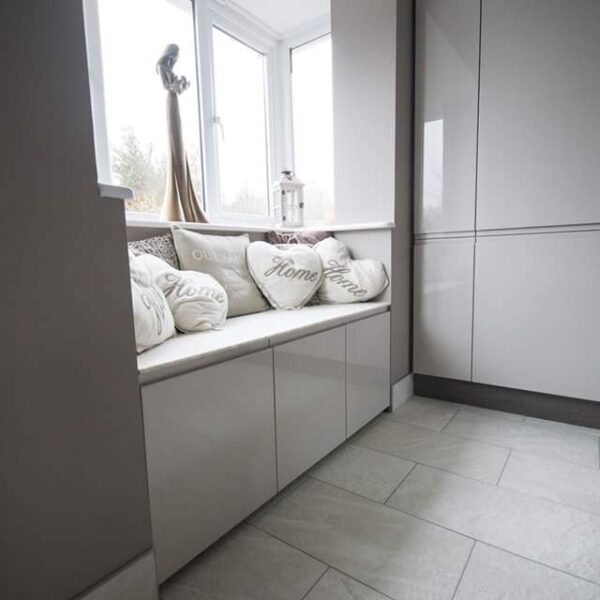 As they wanted to utilise as much space as possible; all the units were taken as close to the ceiling as possible. This was achieved using made to measure cabinetry and doors.