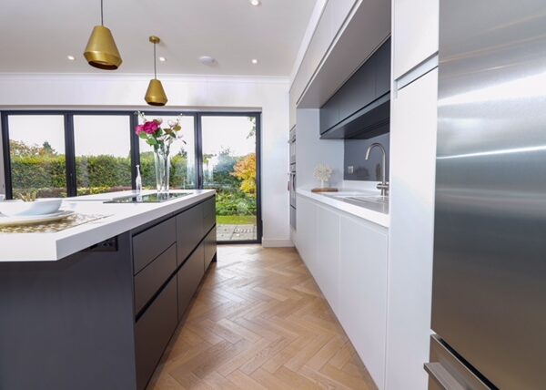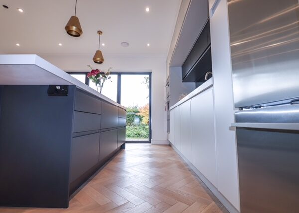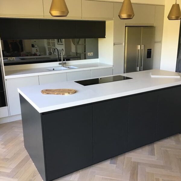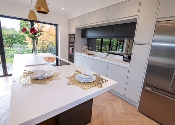 A sleek, modern super matte kitchen in light grey and anthracite for a family in Barnt Green. This beautiful kitchen encapsulates everything that a modern kitchen should be.