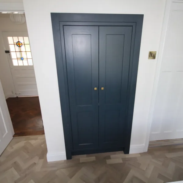 For the aesthetics, we used In-Frame Doors in the striking Hartforth Blue with Oak Drawers. Alongside the contemporary design, we tucked in an innovative drinks cabinet – a thoughtful addition for the homeowners who loved a social setting.