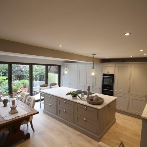 A stunning painted in-frame kitchen for clients in Redditch. Our clients got in touch with us having seen us on HOUZZ; they were in the process of planning an extension to create an open-plan kitchen and dining area.