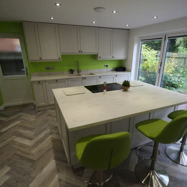 Upon examination, they placed in our hands a spacious kitchen area that sadly wasn’t living up to its potential. The room was there, but it was not optimised in a way that matched its unique selling points. Our task was clear: refashion the generous space into a functional, visually appealing kitchen, thereby offering them extra storage, improved seating, and, importantly, breath-taking views of their lovely garden.