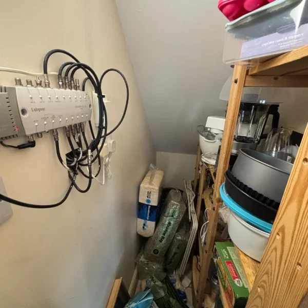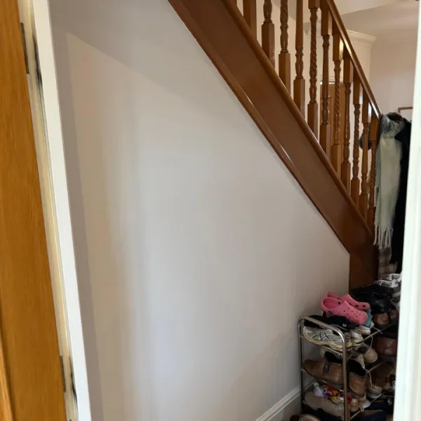 - Partitioning and shelving to the front of the under-stairs cupboard