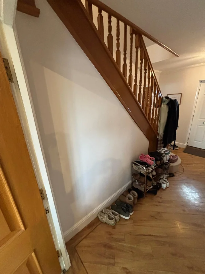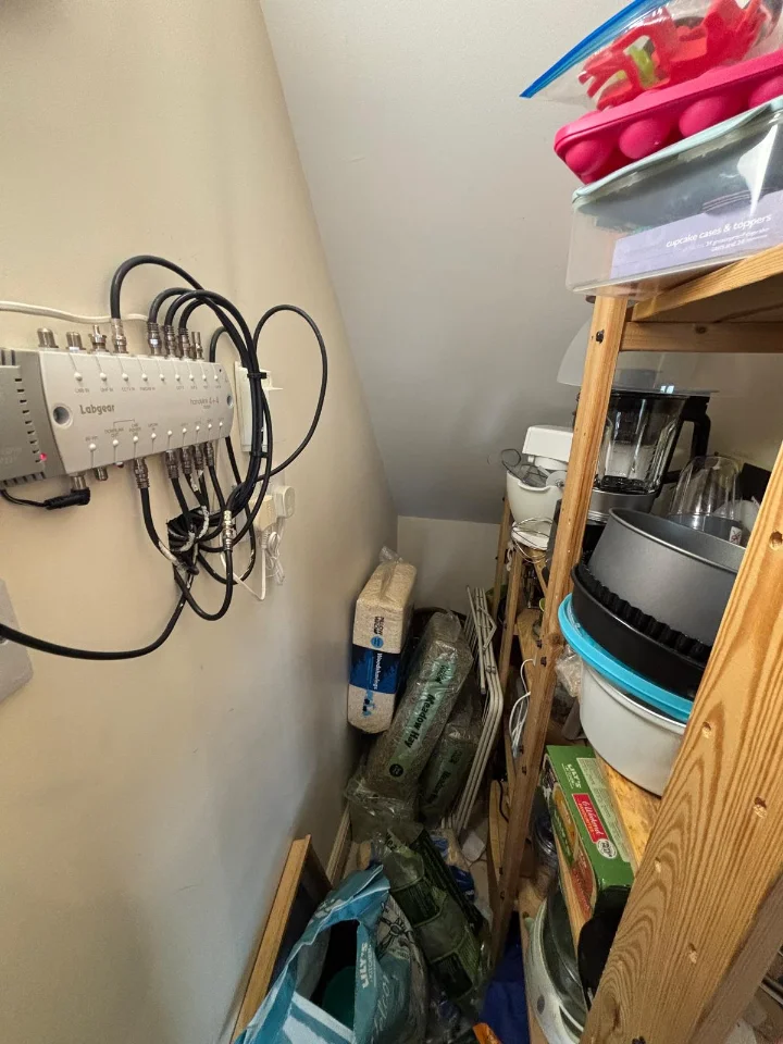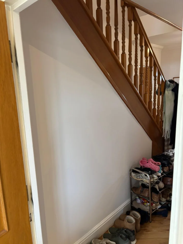 - Partitioning and shelving to the front of the under-stairs cupboard