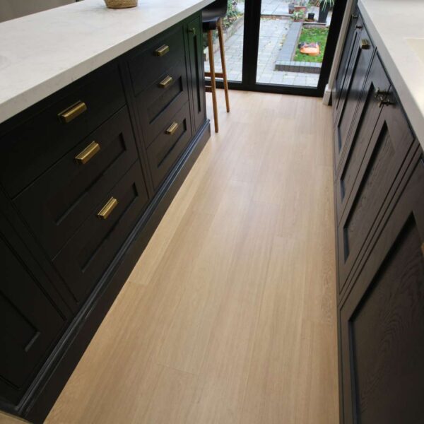 Mirrorstone Taj Mahal worktops and Karndean flooring completed the look.