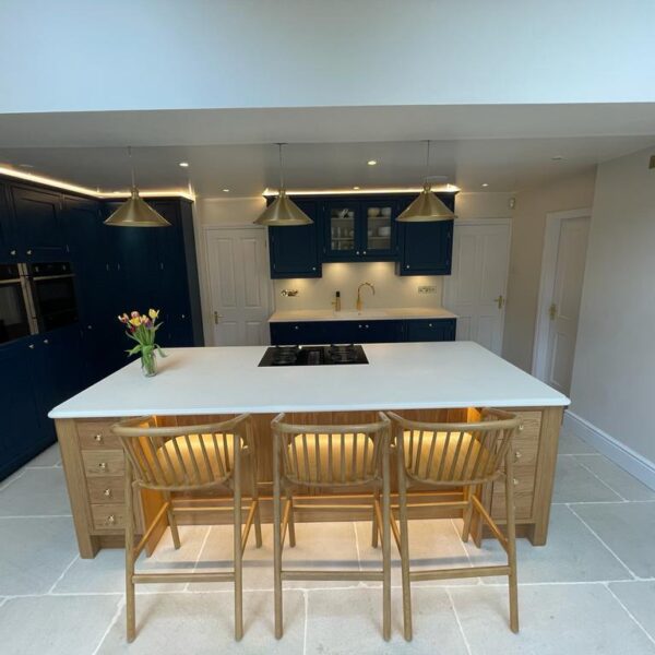 This island was topped with elegant Staron worktops, complete with a bespoke edge detail for a crisp and polished finish.
