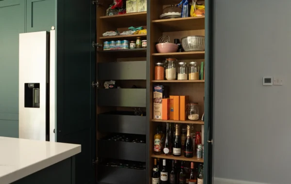 This level of customisation means the storage works for your family’s specific items, from riding boots to school projects. Our designers can marry these functional elements into a cohesive look that sits with the rest of your home, especially a connected kitchen, to create a flow between spaces